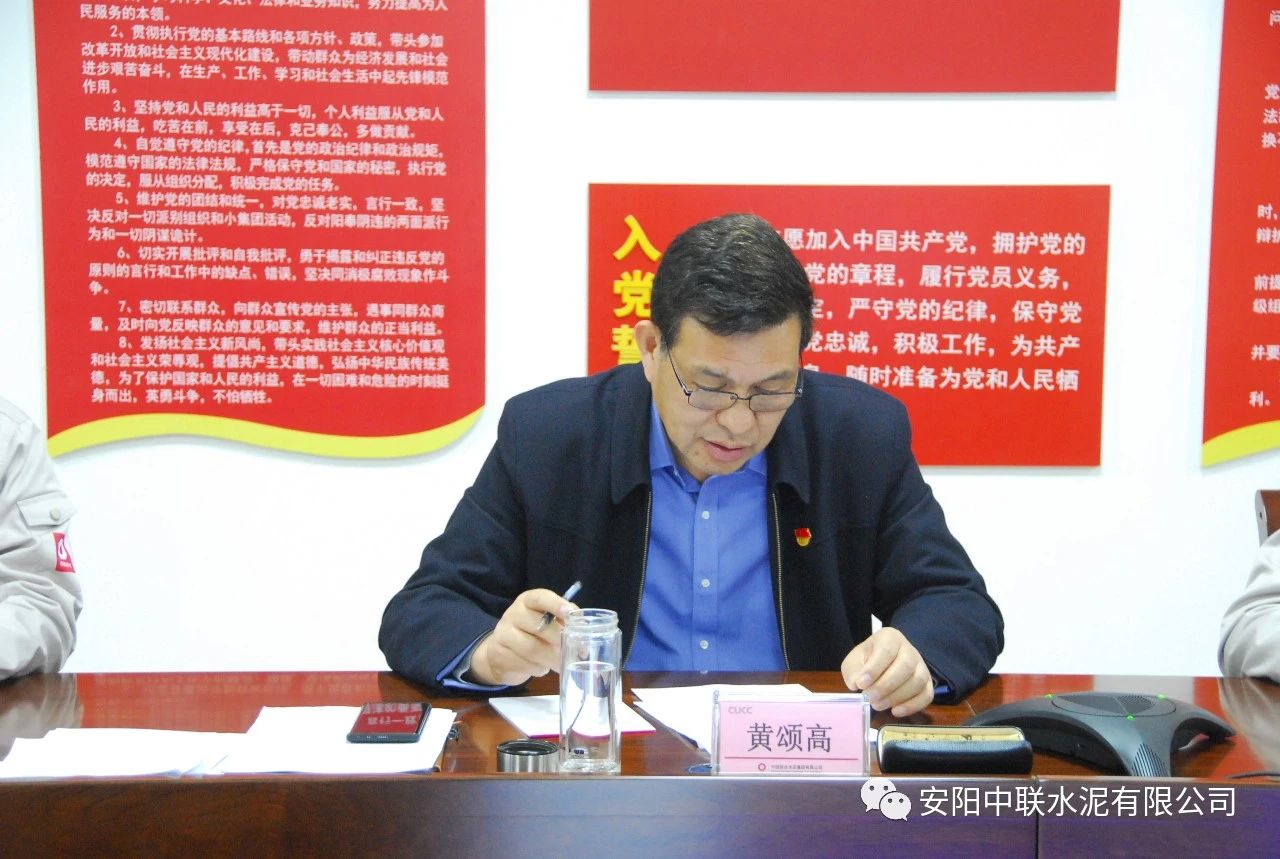最后,黃頌高代表領(lǐng)導(dǎo)班子作表態(tài)發(fā)言。黃頌高表示,安陽中聯(lián)將在中國(guó)聯(lián)合水泥、河南運(yùn)營(yíng)管理區(qū)的正確領(lǐng)導(dǎo)下,以此次民主生活會(huì)為契機(jī),緊緊圍繞中國(guó)聯(lián)合水泥下達(dá)的年度目標(biāo)任務(wù)和政治巡視整改工作安排,著力謀劃好公司黨的建設(shè)和“水泥+”一體化經(jīng)營(yíng)發(fā)展大計(jì),加強(qiáng)科學(xué)謀劃,深化改革創(chuàng)新,搶抓機(jī)遇,堅(jiān)定信心,迎難而上,確保全年各項(xiàng)目標(biāo)任務(wù)如期完成,以優(yōu)異的成績(jī)迎接建黨100周年。